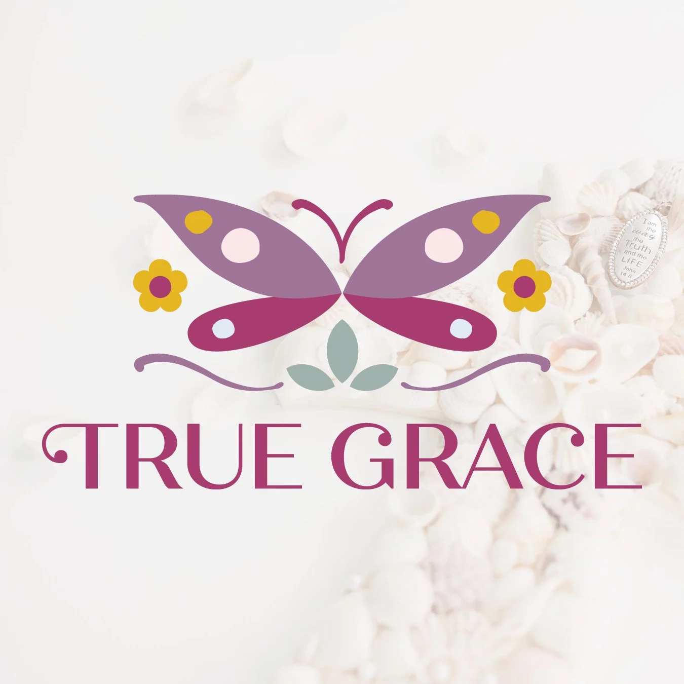 A grounded, warm brand design for spiritual director True Grace, capturing keywords of sacred, whole, joyful. With gentle humor, she helps clients find divine direction for healing and growth. Soothing colors and holistic design.